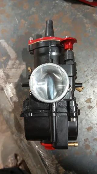 Carburador PWK 34 en color negro con detalles en rojo. Para mejorar el rendimiento. - Modelo: PWK 34 - Color: Negro con detalles rojos