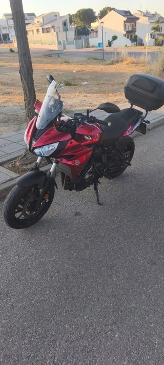 Moto Yamaha Tracer 700 limitada para carnet A2. Está en muy buen estado, cuidada y lista para disfrutar. - Modelo Tracer 700 - Limitada para A2 - Color rojo - Incluye baúl trasero - 22300 km - se entrega con todas sus llaves originales y escape original - ruedas nuevas - batería nueva - mantenimiento al dia
