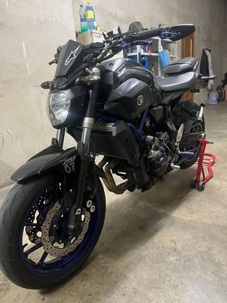 Yamaha mt 07 Se vende yamaha mt 07 muy cuidada y con bastantes extras Manetas anonizadas, palanca de marchas regulable, suspensiones retaradas, reposapies anonizados, escape mivv, portamatriculas corto. Entrego todo lo de serie escape, etc. Limitada para el A2
