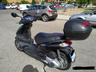 Piaggio Fly 125cc ie en color negro. - Se entrega con llaves originales (normal y maestra) - Moto scooter (inyección eléctrica) - Transmisión automática. - Matriculada en mayo de 2018 - ITV recién pasada (válida hasta enero de 2028) - Actualmente con 11.700km - Único propietario - Siempre en garaje - Se entrega con cofre Givi (con 2 llaves originales) SOLO GENTE SERIA