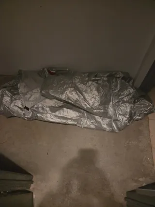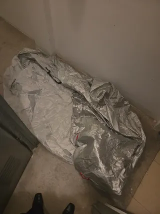 Funda protectora para moto, ideal para resguardarla de la intemperie. - Material plateado reflectante. - Diseño resistente.