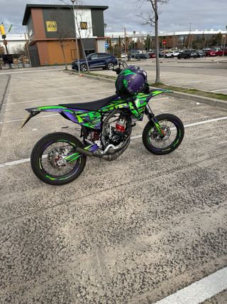 Fantic XM 50 supermotard practicamente nueva Lleva cilindro 80 airsal xtreme escape yasuni r2 y carburador 24 puños protaper hecho todo hace un mes y la moto tiene 4000 km Moto comprada en mayo de 2025 y se vende por no usarse Motor am6 Se dan todas las cosas de serie cilindro carburador y escape y por 100 euros mas doy también casco Hjc del duende verde a juego con la moto Precio negociable Acepto cambios por un microcar