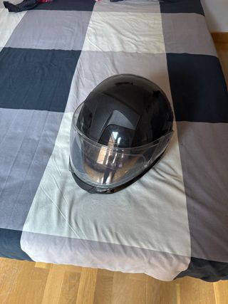Casco de moto en color negro, talla XL. Está en buen estado, con algunas marcas de uso. - Marca: HJC - Talla: XL - Color: Negro - Incluye una pegatina de Vans.
