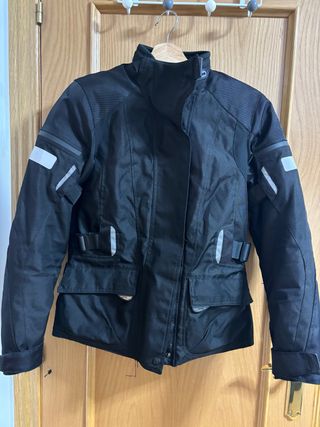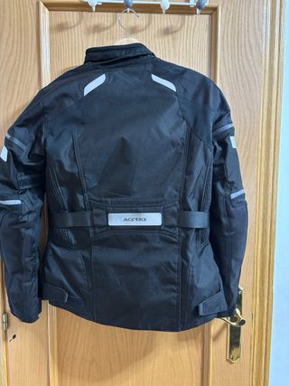 Chaqueta de moto Acerbis para mujer en color negro. Diseñada para ofrecer comodidad y protección. - Protecciones hombros , antebrazo y codos. No incluye la espaldera con bolsillo para poner. - Forro extraible muy calentito. - Material textil resistente. - Cierre frontal con cremallera. - Bolsillos frontales con solapa. - Detalles reflectantes en mangas y espalda. - Cuello alto ajustable.Talla M