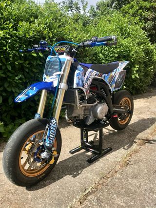 Pit bike Malcor Super Racer 190 cuidada a mimo. Se vende por falta de uso, la moto tiene 21 horas. Extras: -vinilos personalizados, se entregan tapas de origen con sus respectivas pegatinas sin estrenar. -Freno fórmula, se entrega también el de origen. -Entrego también el caballete y más recambios. Nunca dio ningún problema, cambios de aceite cada 3h. y reglaje hecho y recién revisado.