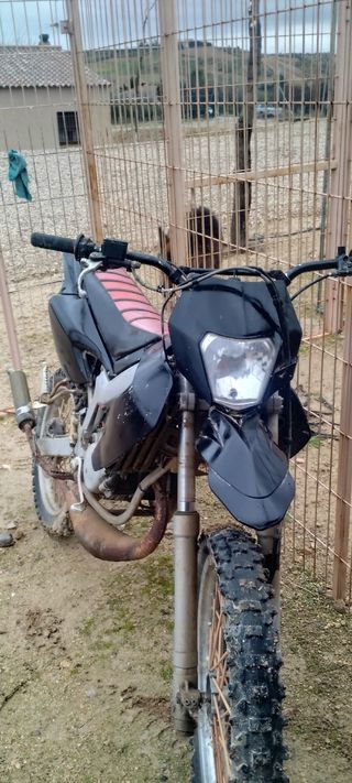 Moto de cross lista para la acción. Moto de cross malaguti sin papeles tiene recién hecho pistón y segmentos y carburador nuevo tiene un pistón de competición moto con bastante fuerza se vende o se cambia por algo que me interese del mismo valor de serie venía con el motor de 50 y ahora tiene uno de 75 - Chasis negro. - Asiento rosa.