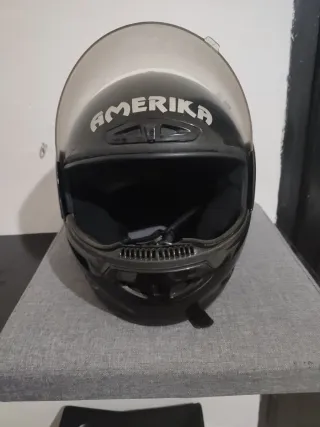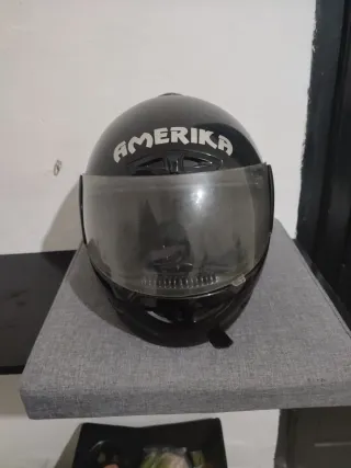 Casco de moto de la marca AMERIKA. - Color negro. - Visera transparente.