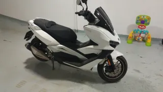 Maxi scooter Keeway Vieste 300 en color blanco, con muy bajo kilometraje. - Diseño moderno y elegante. - Asiento cómodo para el conductor y pasajero. - Parabrisas integrado para mayor protección. - Frenos de disco delanteros y traseros.