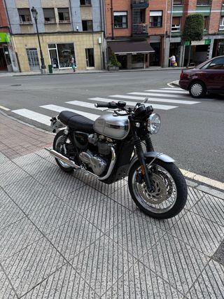 Vendo Triumph Bonneville T120 única y absolutamente impecable. Color Aluminium silver, única unidad a la venta en España. Año 2018 9.500 Km - Asiento tapizado a medida. - Supresor de catalizador Xpipe Motone. - Intermitentes led. - Retrovisor clásico. - Barra cromada pasajero. - Cubrecarter Tamarit. - Emblemas Triumph por toda la moto. (más de 600€). - Tapón depósito con llave. - Todos los mantenimientos en concesionario oficial con facturas. Imprescindible ver, no tiene ni una sola pega. Siempre duerme tapada en garaje. Ruedas al 80%, cambiadas hace 2.000km. Mantenimiento recién hechos.