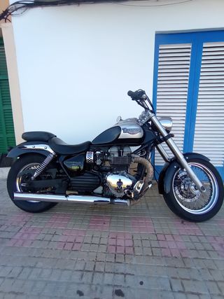 Motocicleta Triumph Bonneville America en color negro y plateado Carburación, siempre en garaje 70.000 km 2001 NEGOCIABLE - Diseño clásico. - Asiento doble. - Motor de dos cilindros.