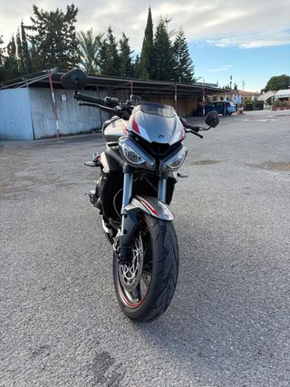 Triumph Street Triple 765 RS 2024 – Deportiva Naked Premium 5800km comprada nueva en Junio 2024 con las dos revisiones en concesionario oficial y aun con garantia de fabrica, tiene todos los extras de proteccion y alguno más es una máquina deportiva ligera y emocionante, equipada con el potente motor de 765 cc derivado de la Moto2, que ofrece una respuesta suave, aceleración brutal y par excelente en todo régimen. Ideal para quienes buscan dinámica de competición con fiabilidad de calle. Mantenimiento al día, historial documentado y lista para rodar.