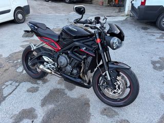 Modelo 765 R - 118 cv no limitable. Carnet A Año: 2018 Modelo con pantalla TFT Extras: (+ de 1500€) Bomba de freno brembo RCS 19 Cola de escape y colectores IXIL RC Quilla Triumph Colin monoplaza Triumph (no en las fotos) Espejos de manillar Highsider homologado Portamatriculas ( se puede modificar a corto o largo) Diabolos Protector de motor Triumph Protector de deposito Evotech Protector de deposito Oxford Maneta de embrague Puig Radiador Evotech Se entrega con todo lo de serie. 53.000 KM - Cuidada y mantenida al dia, va perfecta. Revisiones cada 6000 km Recién revisada: Canvio de bujias y filtro de aire Itv octubre 2026