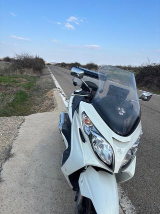 Suzuki Burgman 400 del año 2010. Se cambia por coche - Scooter de color blanco. - Incluye cofre trasero 65 L SE LE A CAMBIADO - correa - variador - bateria con garantia recalvi - filtros de la admision / aire - bujia - soporte artesanal para no quitar el respaldo - aceite y respectivo filtro de aceite - amortiguador maletero y luz - luces h7 y h4 de led, ademas de luces de freno y intermitentes todo de led - A falta de llegar la tapa del deposito esta pedida - Ruedas nuevas no tiene ni un año Itv recien pasada y el seguro hasta mayo - ademas de pantalla carplay ya instalada Hay factura 47600km