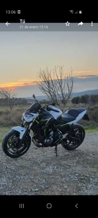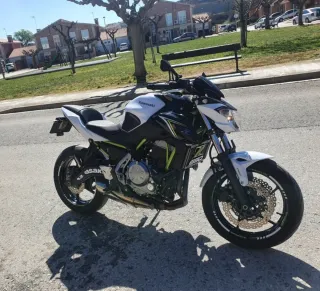 Moto Kawasaki Z650 color blanco y verde. Tiene 14.000km. Año 2017. Siempre conducida por una mujer, se vende por maternidad. Limitada para carnet A2. Rejilla delantera y vinilos personalizados,espejos deportivos, porta matrículas corto,vinilo guardabarros trasero personalizado, intermitentes led deportivos,protectores de depósito,la entrego con cúpula delantera para el viento,mantenimientos al día en casa oficial Kawasaki. ITV al día hasta 2027. Ruedas nuevas. Tengo intermitentes y espejos de serie. Está impoluta ,sin un solo rasguño como nueva. Mejor ver y probar .