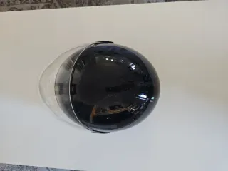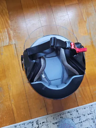 Casco de moto con interior acolchado y correa de sujeción. - Visera transparente. - Cierre de seguridad. - Talla XS.