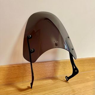 Parabrisas para motocicleta con faro redondo. Color ahumado y buen estado. Incluye soportes de montaje.