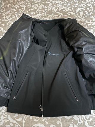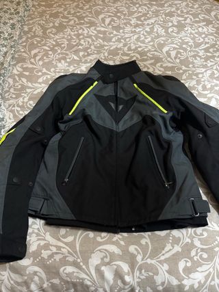 Chaqueta de moto Dainese en tonos negro y gris, diseñada para touring, tres en uno. - Diseño moderno con detalles en amarillo. - Cierre frontal con cremallera. - Puños ajustables. - Bolsillos frontales con cremallera. - Forro polar desmontable - Protector waterproof desmontable