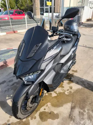Maxi-scooter Sym Maxsym 500 LT en color negro mate. 30.000Km - Diseño deportivo y elegante. - Revisada y ruedas nuevas. - ABS - Asiento doble de cuero negro. - Cúpula frontal corta y otra alta. - Respaldo para el pasajero.