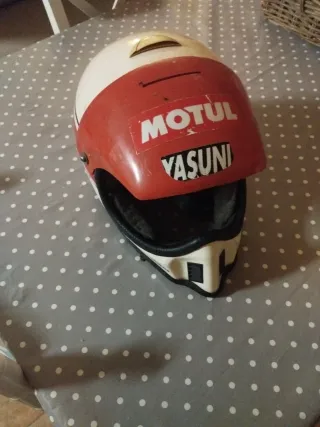 Casco de motocross con un diseño llamativo en rojo y blanco. - Pegatinas de Motul y Yasuni. - Visera integrada. Está algo gastado pero aun así protege. Precio negociable.
