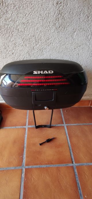Maleta baúl shad, le falta la llave. está en buenas condiciones pero tiene un leve raspado en un lado que se ve en la foto.