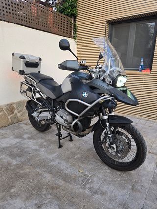 Moto BMW R1200GS Adventure en color verde y gris. Buen estado, con 2 juegos de llaves originales y de taller. Todos los extras de la epoca. Año 2010 - Maletas de aluminio Touratech - Defensas de motor. - Parabrisas alto.