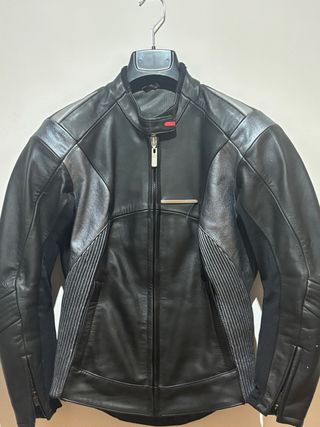 Chaqueta de cuero para moto de mujer,talla S prácticamente nueva. - Material: Cuero - Color: Negro - Cierre de cremallera frontal - Detalles en gris en los laterales y mangas