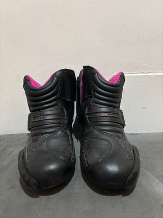 Botas de moto para mujer de la marca Alpinestars, modelo Stella,talla 37 - Color negro con detalles en rosa. - Cierre con velcro y cremallera. - Protecciones integradas.