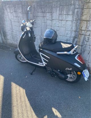 Scooter negra marca Chill, modelo Um 125 4T. Diseño moderno y elegante. - Matriculada Marzo de 2022 - Color negro mate. - Asiento cómodo. - Mantenimiento reciente en casa oficial - Bateria nueva a estrenar - Solo 2500 km - Minimo consumo - 2 Llaves - Candado con alarma - Cargador movil -Enciende a bateria y a pata - No paso aun la primera Itv que le tocaria para el ańo