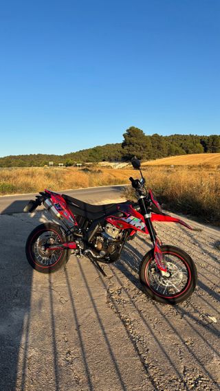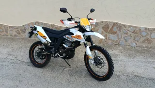 Vendo Dsr Ex 125cc practicamente nueva por cambio de cilindrada. Se fabrica con licencia de Piaggio, por lo que toma la base de la Derbi Senda DRD 125 SM, toda una garantía de buen funcionamiento. - 4.000km matriculada en Mayo 2021 - Motor 4T refrigeracion líquida de 15 CV, límite para poder ser conducida con carnet de coche y A1. - Itv y seguro hasta Junio 2027. - Disco trasero y pastillas nuevas. - Cambio de aceite y filtros hace 900km - Dos portamatriculas y entrego espejo derecho tambien. - Estado actual : puños nuevos e intermitentes pequeños homologados ( entrego originales tambien) La moto esta en Palencia Urge venta
