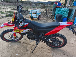 vendo um dsr ex 125 4t 1500 kilómetros año 23/12/2024 15cv vendo por cambiar de cilindrada . tiene la careta,guardabarros y porta matrícula,matrícula pequeña,las 2 manetas embrague y freno, funda del sillón y pistón cambiado a 12 dientes. se entrega con todo lo original y 1 kit de pegatinas de serie . rueda delantera al 90% rueda trasera al 50% moto para iniciarse al mundo del enduro . muy divertida y con bastante fuerza y potencia. puedes venir y probar sin compromiso .