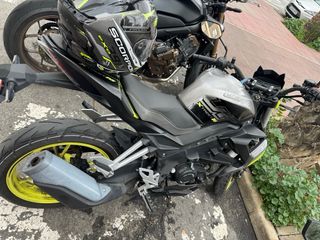 Moto deportiva con un diseño moderno y llamativo. - Color principal negro con detalles en amarillo vibrante. - Estilo agresivo y aerodinámico. 12'2 , 9500 c.v. 6 marchas 9100 km Ruedas nuevas Matrícula MDK .......
