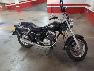 Moto Suzuki Marauder 125cc en color negro. - Estilo custom. - Asiento doble. - Cromados en manillar y escape.