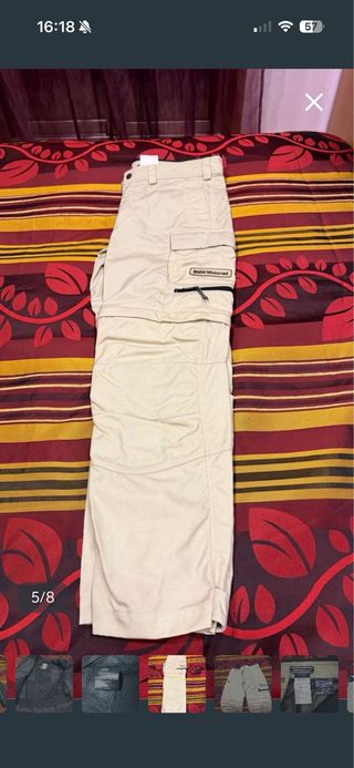 Pantalón de la marca BMW, modelo Summer, en color beige. - Diseño tipo cargo. - Cremallera en los bolsillos. -Cremalleras para dividir a media pierna -Logo bmw