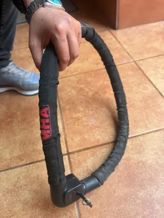 Candado de seguridad tipo pitón. - Diseño flexible y resistente. - Funda protectora de tela. - Incluye llaves.