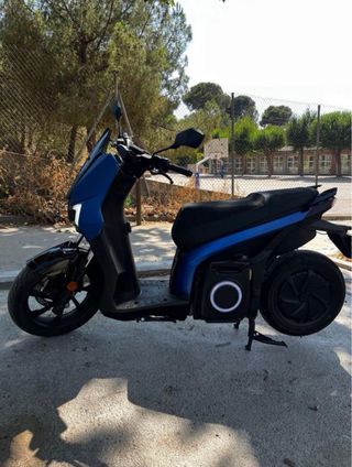 Preciosa moto eléctrica Seat Mo 125 en azul. Está en perfecto estado y lista para usar. Modelo: Seat Mó Color: Azul Funciona perfectamente Batería revisada y manteniendo toda la autonomía (137km) Neumático trasero y pastillas de freno nuevas Batería en propiedad 14.700 km 2021 ITV hasta 2027 Este modelo lleva de extra el asiento anti deslizante tipo alcantara, muy pocas lo llevan Moto muy versátil con sitio en el bahul para 2 cascos integrales, se regala con la moto un candado con alarma.