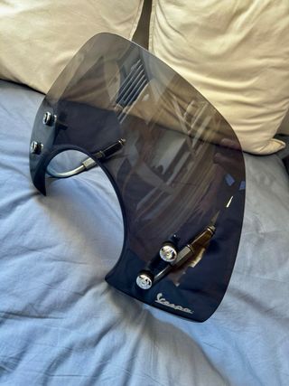 Parabrisas transparente original para Vespa GTS. Fabricado en material resistente y con soportes metálicos. - Modelo grande: 70 cms de alto x 42 de ancho. Protege las manos - Incluye sistema de montaje - Usado el invierno pasado, este no he llegado a montarlo con tanta agua - Ha estado montada en una GTS de 2022, la de faro LED. Diámetro del faro 20 cms. Escucho ofertas razonables. Entrega en mano en Madrid capital o cualquier punto de la A2 entre Madrid y Medinaceli. No hago envíos para evitar deterioro en el transporte. Pantalla, parabrisas, cúpula