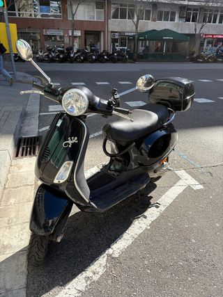 Se vende Vespa LX 125 en color negro y asiento beige. - Vespa LX 125 del año 2010 - Neumáticos nuevos - ITV vigente hasta 10/2027 - Seguro vigente - Revisión hecha - Candado incluido - Baúl incluido - Casco ByCity en negro talla S incluido Lo vendo porque me mudo fuera de Barcelona. 📍Ubicación: Eixample, Barcelona