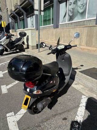 Scooter Piaggio Vespa LX 49cc en color negro. Funciona correctamente. - Modelo: Vespa LX - Motor: 49 cc, 2 tiempos - Color: Negro Es del año 2007 y tiene 55.638 kilómetros. ITV pasada hasta 2027. La vendo porque me cambio a una moto de mayor cilindrada, pero me funciona perfectamente. Duerme en parking.