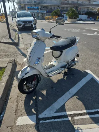 Ciclomotor Vespa S en color blanco. Un modelo ágil y fácil de conducir. - Diseño moderno y deportivo. - Asiento cómodo para el conductor y pasajero. Motor de arranque y batería cambiados hace poco.
