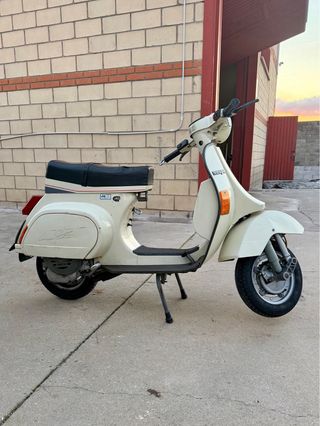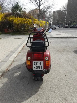 Vespa PK XL estilo Mad Max. Funciona con arranque a patada o con botón. Está pasada a histórica, se puede andar por Madrid con ella. La moto va genial para tener casi 40 años. Recién sacada del taller (Vespa Aladro) de hacer revisión completa. Tengo factura. Bobina nueva puesta en la revisión. La vendo por pasarme a otro modelo de Vespa.