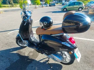 Se vende Vespa Primavera 125 en color negro. Es un modelo automático, ideal para moverse por la ciudad con estilo y comodidad. SIEMPRE EN GARAJE PRIVADO. - Diseño clásico y elegante. - Asiento cómodo en tono marrón. - Incluye baúl trasero para almacenamiento adicional. - Parabrisas alto para mayor protección. - incluye baúl, cúpula y casco. Precio de compra 5.900€