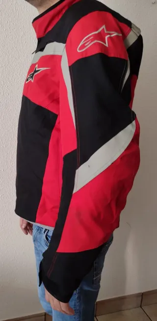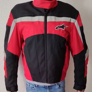 Chaqueta de moto Alpinestars con un diseño deportivo y llamativo. - Combinación de colores rojo, negro y detalles grises. - Logo de Alpinestars en la manga. - Protecciones en hombros, codos y antebrazos. - Como nueva. - Doble capa. - Talla XL. - Puedes verla y probarla sin compromiso.