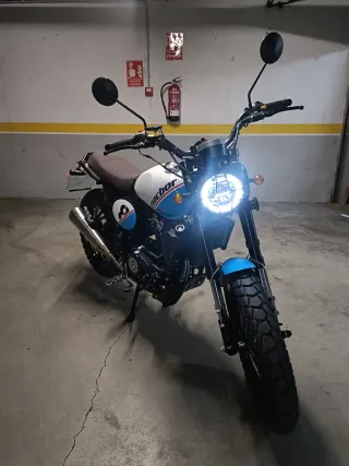 Moto Macbor Eight Mile 125 LC en perfecto estado. Ideal para disfrutar de la ciudad y rutas cortas. Moto impecable, matriculada en Septiembre de 2025. Siempre en garaje y con muy pocos kilómetros (600 km aprox). - Moto Scrambler com un diseño neo-retro y deportivo. - Faro delantero LED circular. - Asiento cómodo de dos plazas. - Ruedas mixtas para asfalto y caminos.