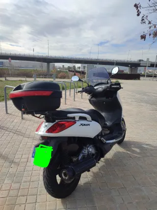 Maxi-scooter Yamaha Xmax del año 2007. - Cilindrada: 125 cc. - Transmisión automática. - Diseño maxi-scooter. Moto sin ITV no la paso por falta de bombilla trasera de matricula y guardabarros delantero roto. La moto tiene ruido en el motor no se sabe motivo. Por eso se vende. Por lo demás está bien y aun funciona. La ruedas prácticamente nuevas. Algún plástico no está en buen estado por desgaste de los años. Se negocia algo y NO SE VENDE POR PIEZAS si no entera cambio de nombre a cargo del comprador si que quiere hacerlo o darla de baja para piezas.