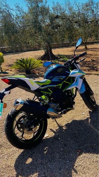 Moto Kawasaki Z 125 en perfecto estado. Ideal para disfrutar de la conducción. - Diseño deportivo y ágil. - Color negro, blanco y verde lima. - Manillar deportivo. -ITV pasada recientemente -Año 2021 -5030 km -4 tiempos -15cv -muy bien cuidada siempre en garaje Precio negociable