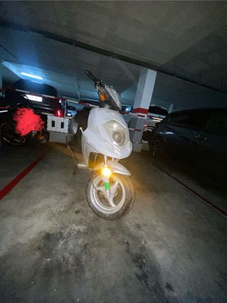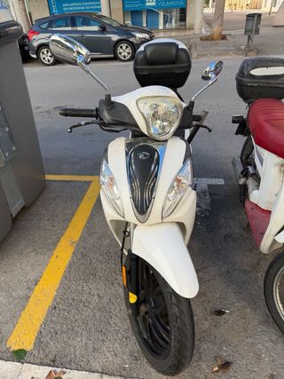 Scooter Kymco Miler 125 en color blanco. Ideal para moverse por la ciudad con agilidad. - Diseño moderno y deportivo. - Maletero integrado para mayor capacidad de almacenamiento. - Ruedas de aleación negras. Solo 11,300 kms En perfecto estado Se puede probar sin compromiso