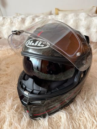 Casco HJC RPHA70 de carbono en talla L. Diseñado para carretera, combina seguridad y estilo. - Material exterior de carbono. - Cierre de doble anilla. - Visera clara. - Interior desmontable y lavable.