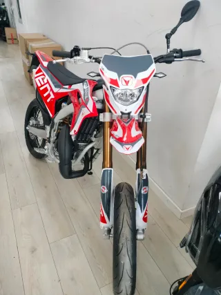 Moto de Supermotard. Horquillas invitadas. Motor minarelli. Somos concecionario oficial VENT - Diseño deportivo en rojo y blanco. - Estilo supermotard. - Transmisión manual.