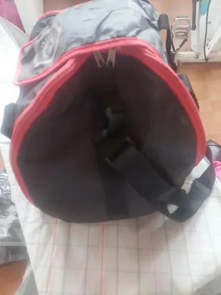 Mochila pequeña para colocar en la parte trasera de una moto. - Color negro. - Material resistente. - Cierre de cremallera.
