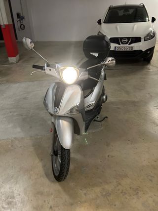 Moto tipo scooter Piaggio Liberty 125cc del 2009en color plata. Ideal para moverse por la ciudad con agilidad. Pierda aceite y le voy echando cada dos-tres semanas pero funciona perfectamente de ahi el precio. - Diseño moderno y elegante. - Cómoda para el conductor y pasajero. - Maletero bajo el asiento para almacenamiento.